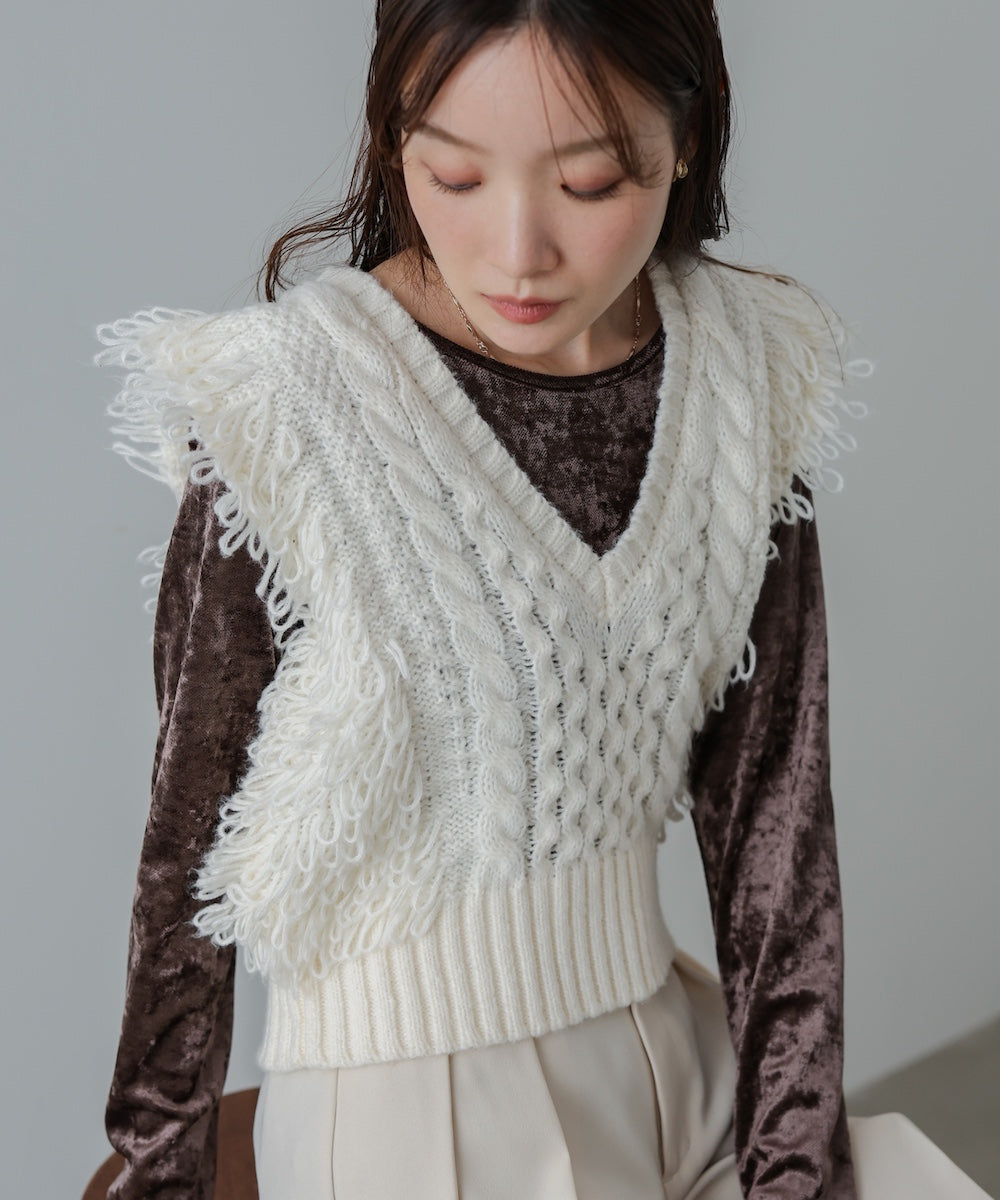 フリンジバルキーニットベスト