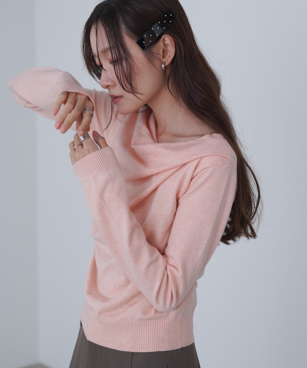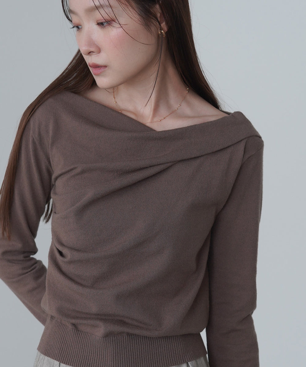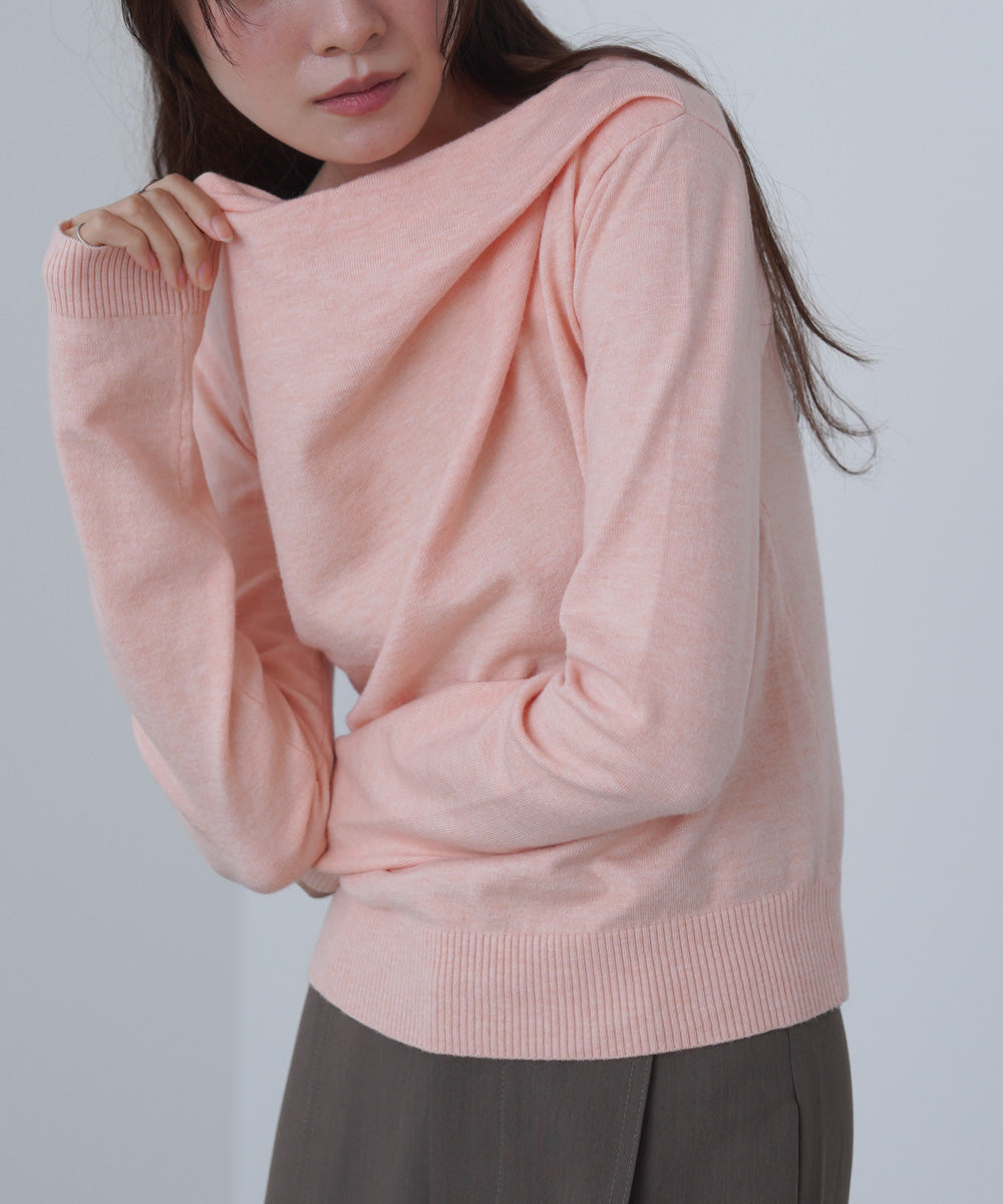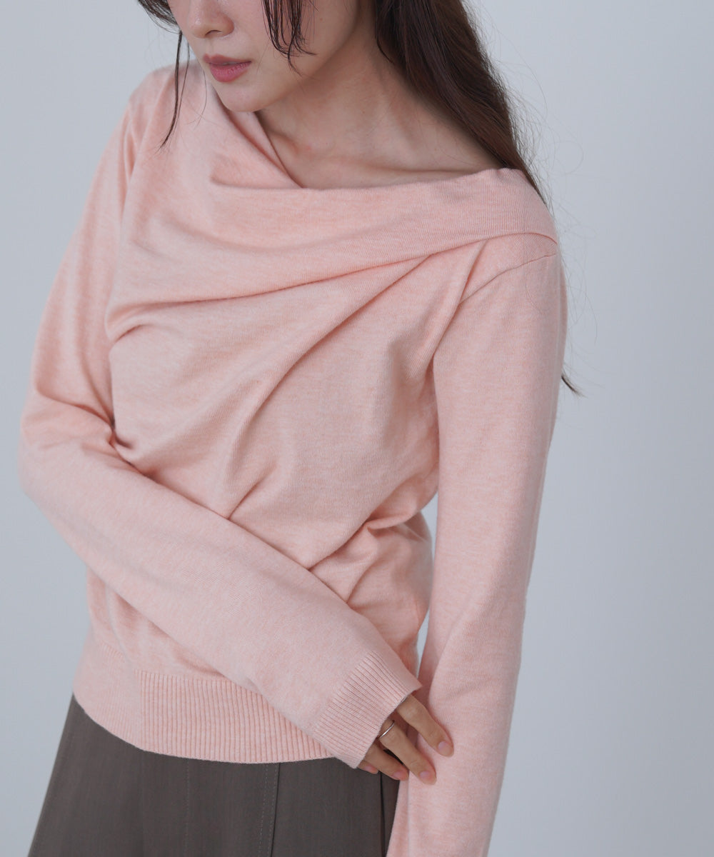 使いやすさ抜群のドレープトップスから長袖ニットが登場!シンプルながらも存在感を放つ、クロスデザインのドレープニットプルオーバー。全体的に入ったドレープが自然な立体感を生み出し、顔まわりをすっきりと見せてくれます。韓国テイストを感じる洗練されたシルエットで、1枚で着るだけでスタイルが完成するのも嬉しいポイント。ベーシックなアイボリー・チャコール・ブラウンに加え、柔らかくフェミニンな印象のピンクもラインナップ。カラーによって雰囲気が大きく変わり、幅広いシーンで活躍するアイテムです。シンプルなデザインだからこそ、アクセサリーや小物でアレンジを楽しめます。