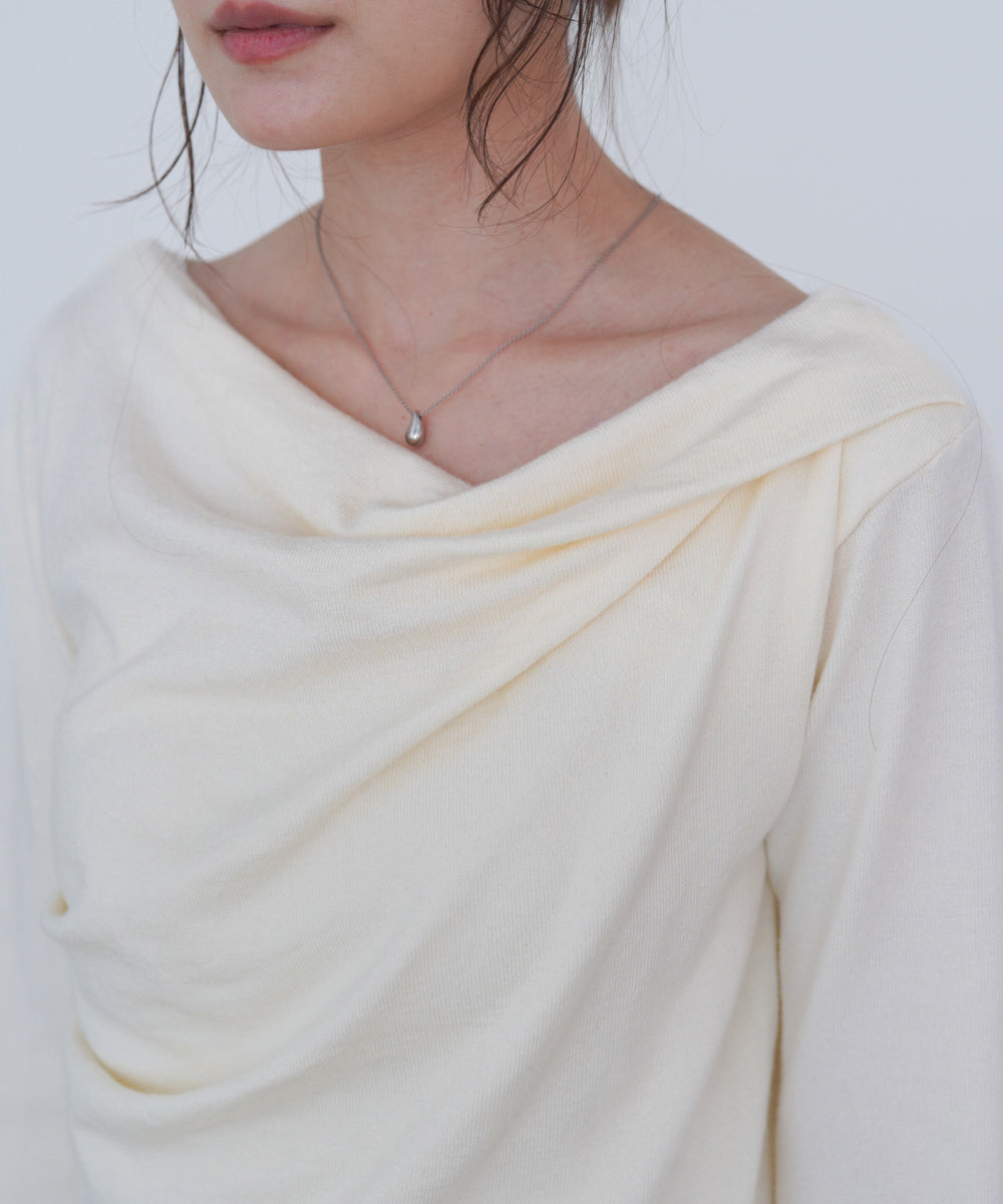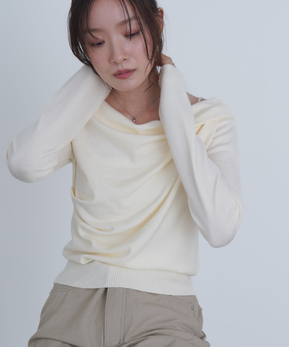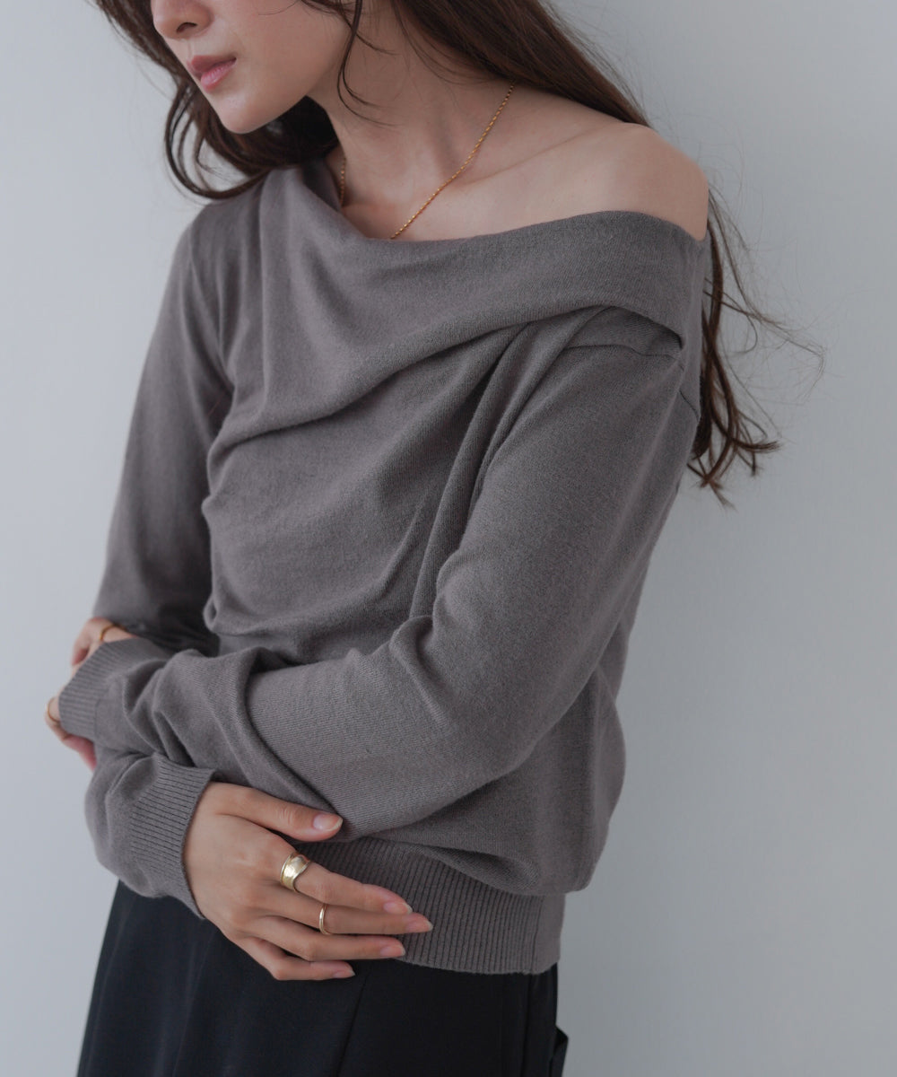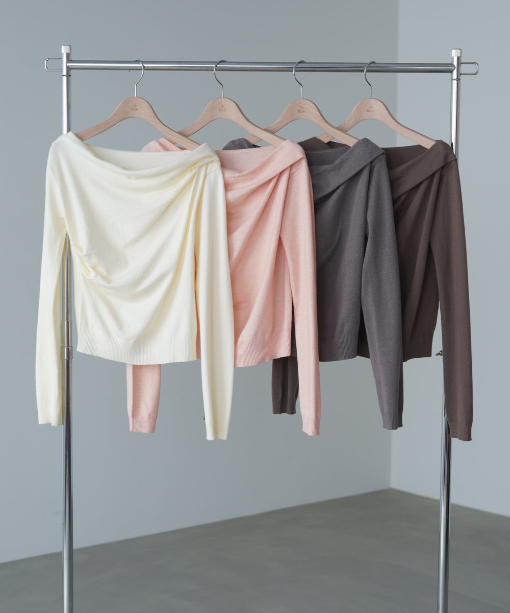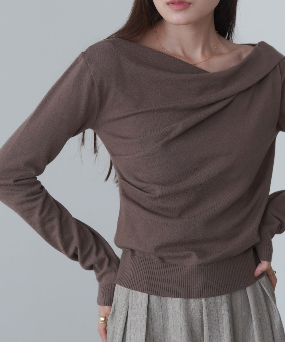 使いやすさ抜群のドレープトップスから長袖ニットが登場!シンプルながらも存在感を放つ、クロスデザインのドレープニットプルオーバー。全体的に入ったドレープが自然な立体感を生み出し、顔まわりをすっきりと見せてくれます。韓国テイストを感じる洗練されたシルエットで、1枚で着るだけでスタイルが完成するのも嬉しいポイント。ベーシックなアイボリー・チャコール・ブラウンに加え、柔らかくフェミニンな印象のピンクもラインナップ。カラーによって雰囲気が大きく変わり、幅広いシーンで活躍するアイテムです。シンプルなデザインだからこそ、アクセサリーや小物でアレンジを楽しめます。