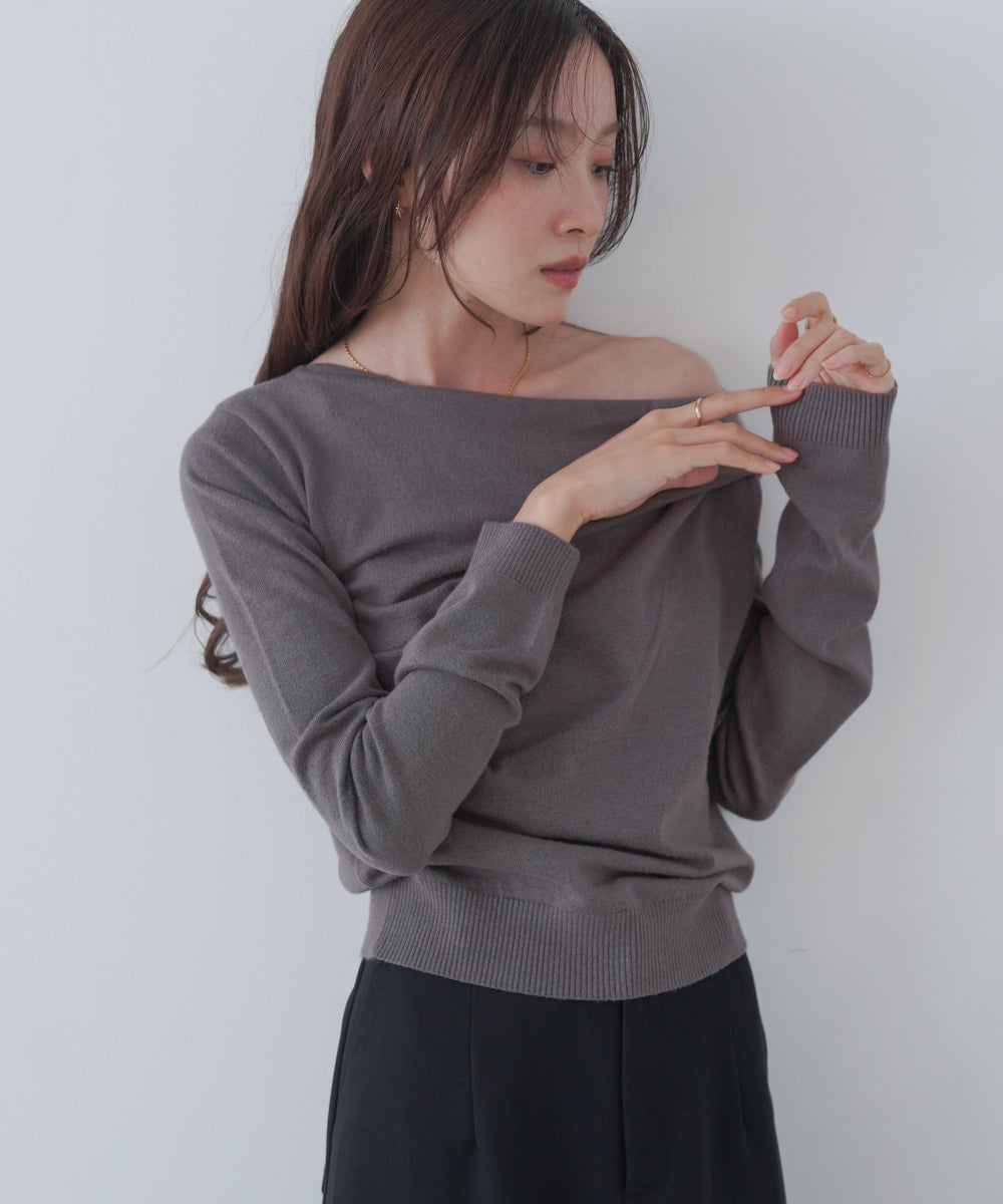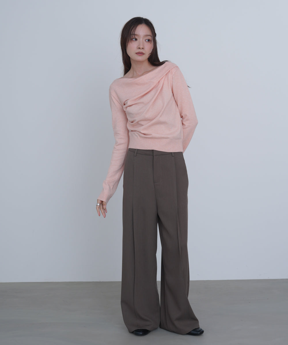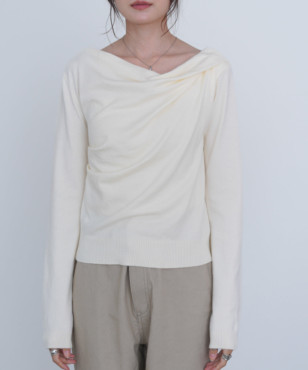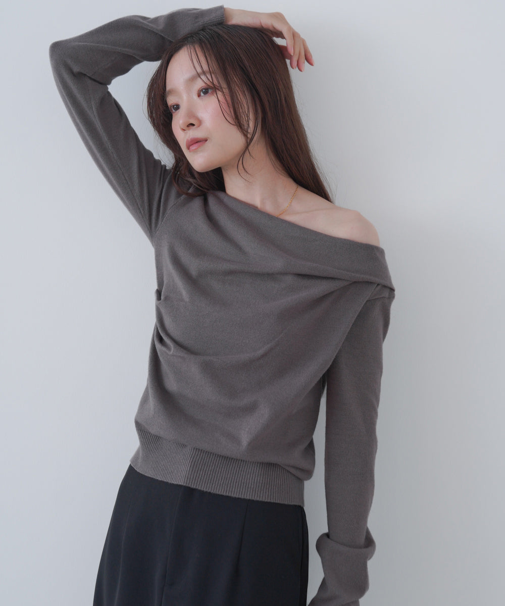 使いやすさ抜群のドレープトップスから長袖ニットが登場!シンプルながらも存在感を放つ、クロスデザインのドレープニットプルオーバー。全体的に入ったドレープが自然な立体感を生み出し、顔まわりをすっきりと見せてくれます。韓国テイストを感じる洗練されたシルエットで、1枚で着るだけでスタイルが完成するのも嬉しいポイント。ベーシックなアイボリー・チャコール・ブラウンに加え、柔らかくフェミニンな印象のピンクもラインナップ。カラーによって雰囲気が大きく変わり、幅広いシーンで活躍するアイテムです。シンプルなデザインだからこそ、アクセサリーや小物でアレンジを楽しめます。