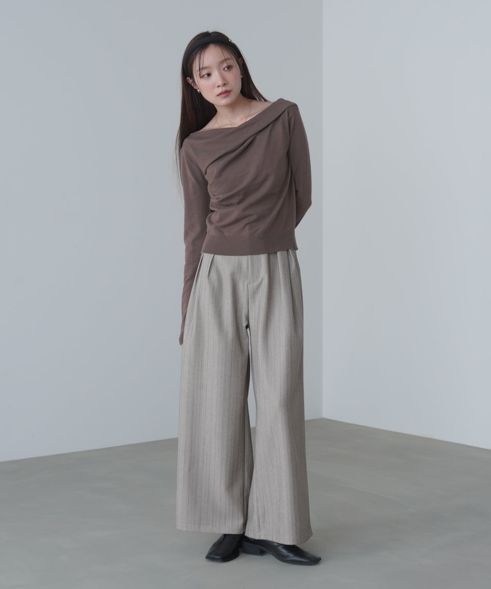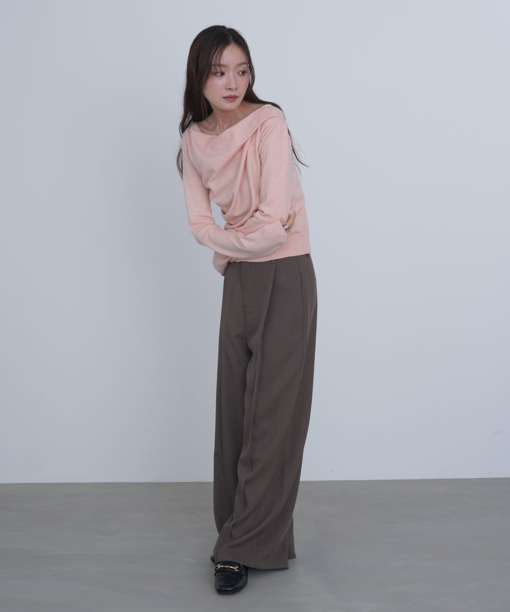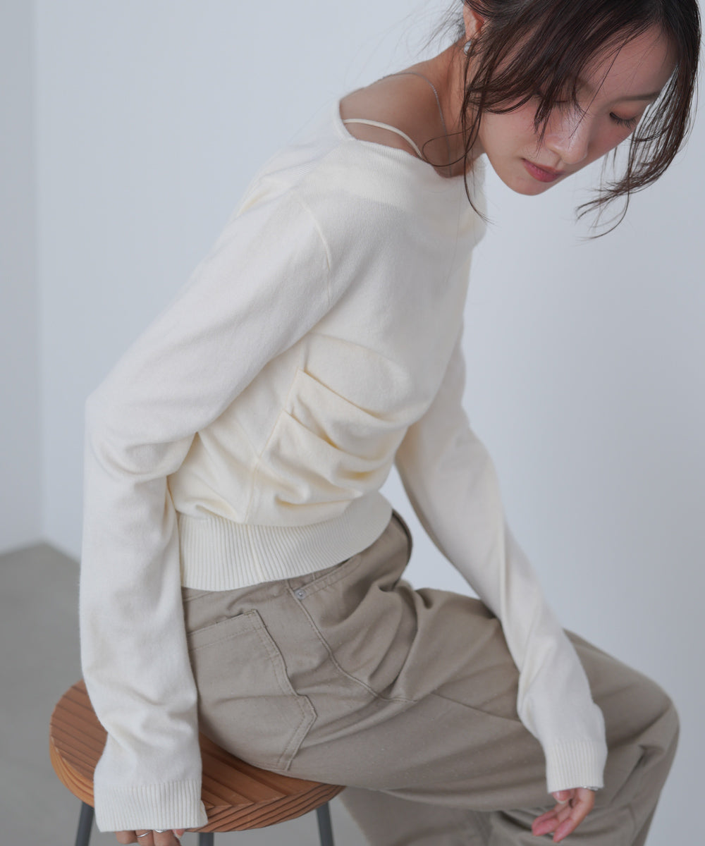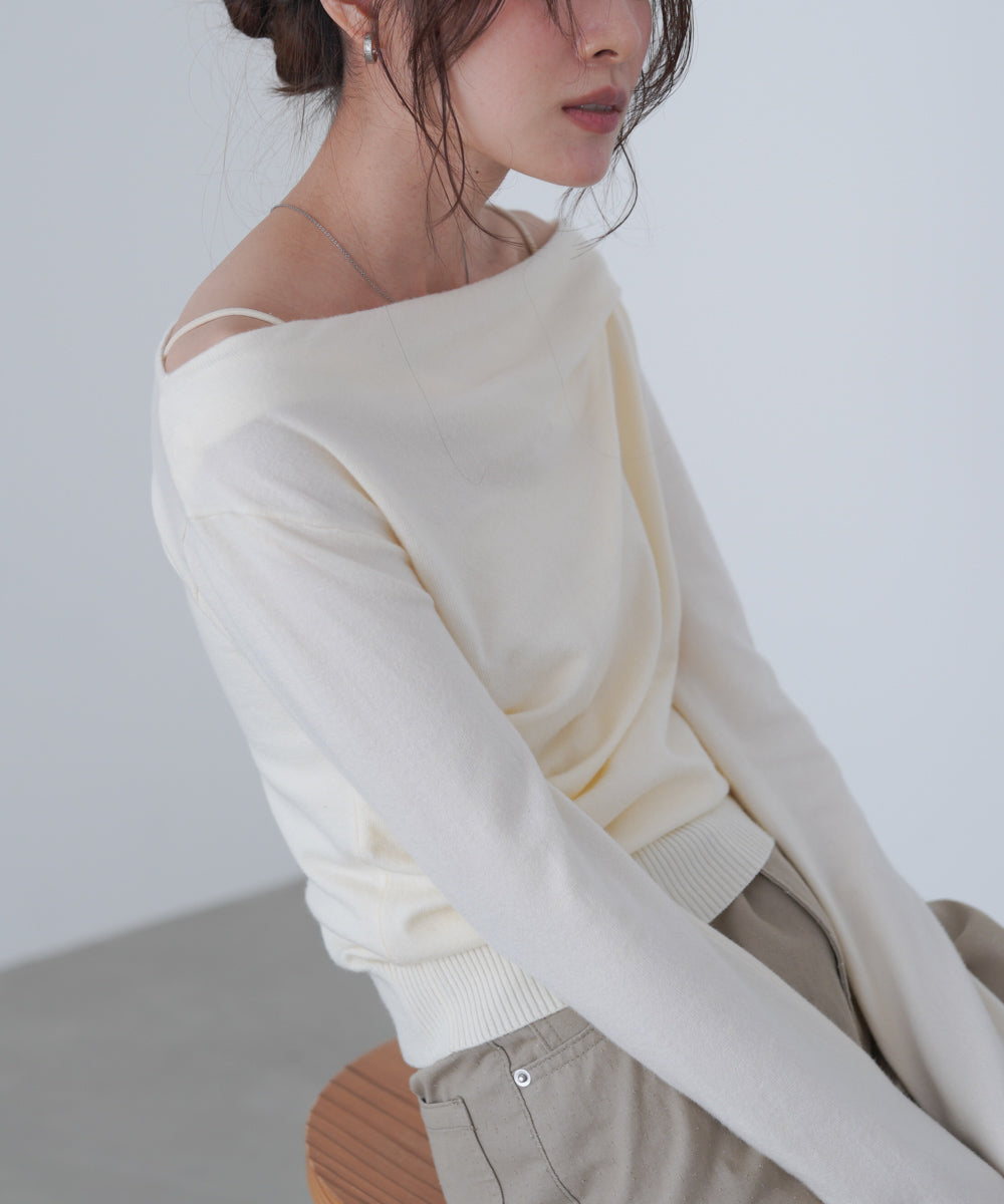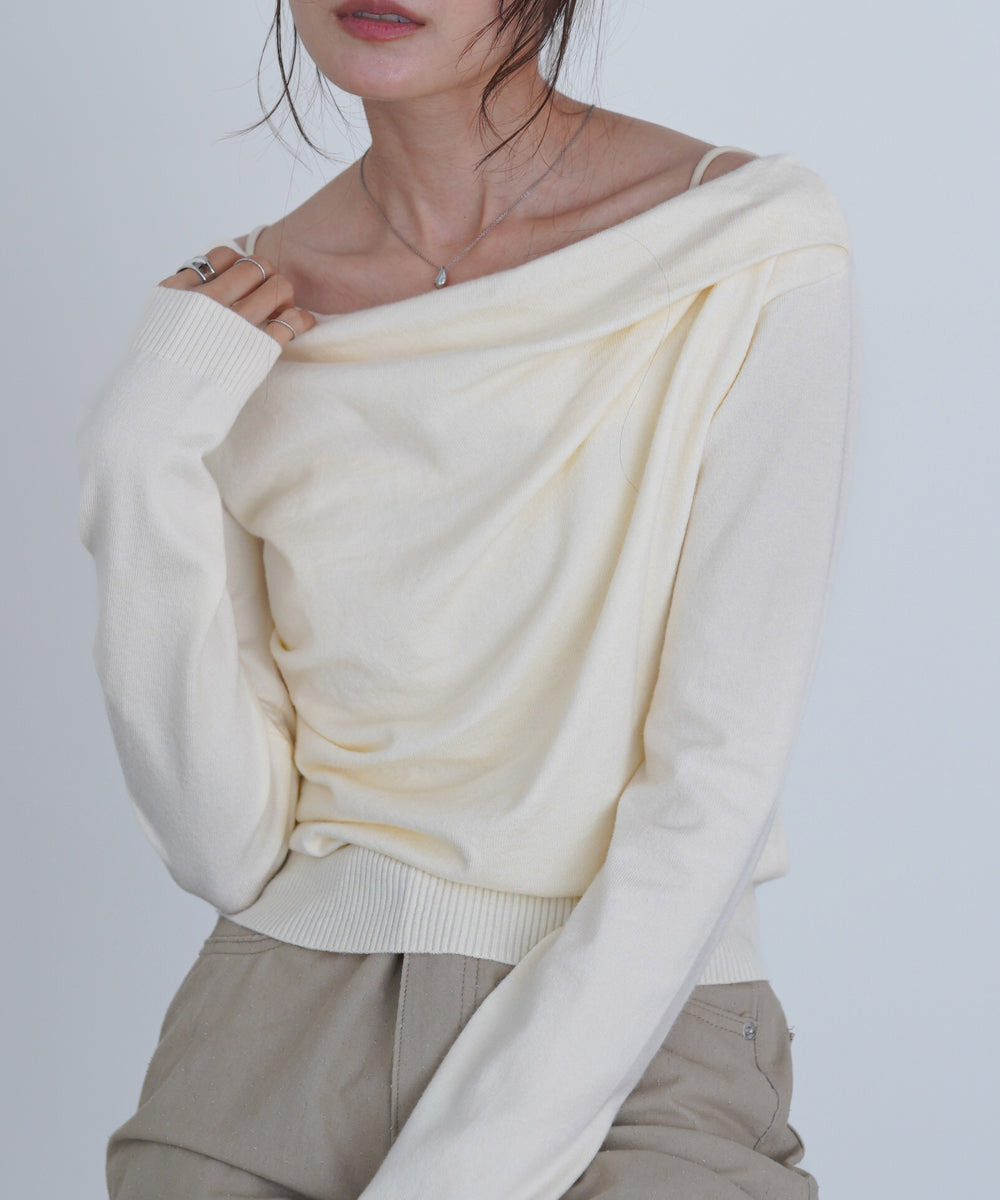 使いやすさ抜群のドレープトップスから長袖ニットが登場!シンプルながらも存在感を放つ、クロスデザインのドレープニットプルオーバー。全体的に入ったドレープが自然な立体感を生み出し、顔まわりをすっきりと見せてくれます。韓国テイストを感じる洗練されたシルエットで、1枚で着るだけでスタイルが完成するのも嬉しいポイント。ベーシックなアイボリー・チャコール・ブラウンに加え、柔らかくフェミニンな印象のピンクもラインナップ。カラーによって雰囲気が大きく変わり、幅広いシーンで活躍するアイテムです。シンプルなデザインだからこそ、アクセサリーや小物でアレンジを楽しめます。