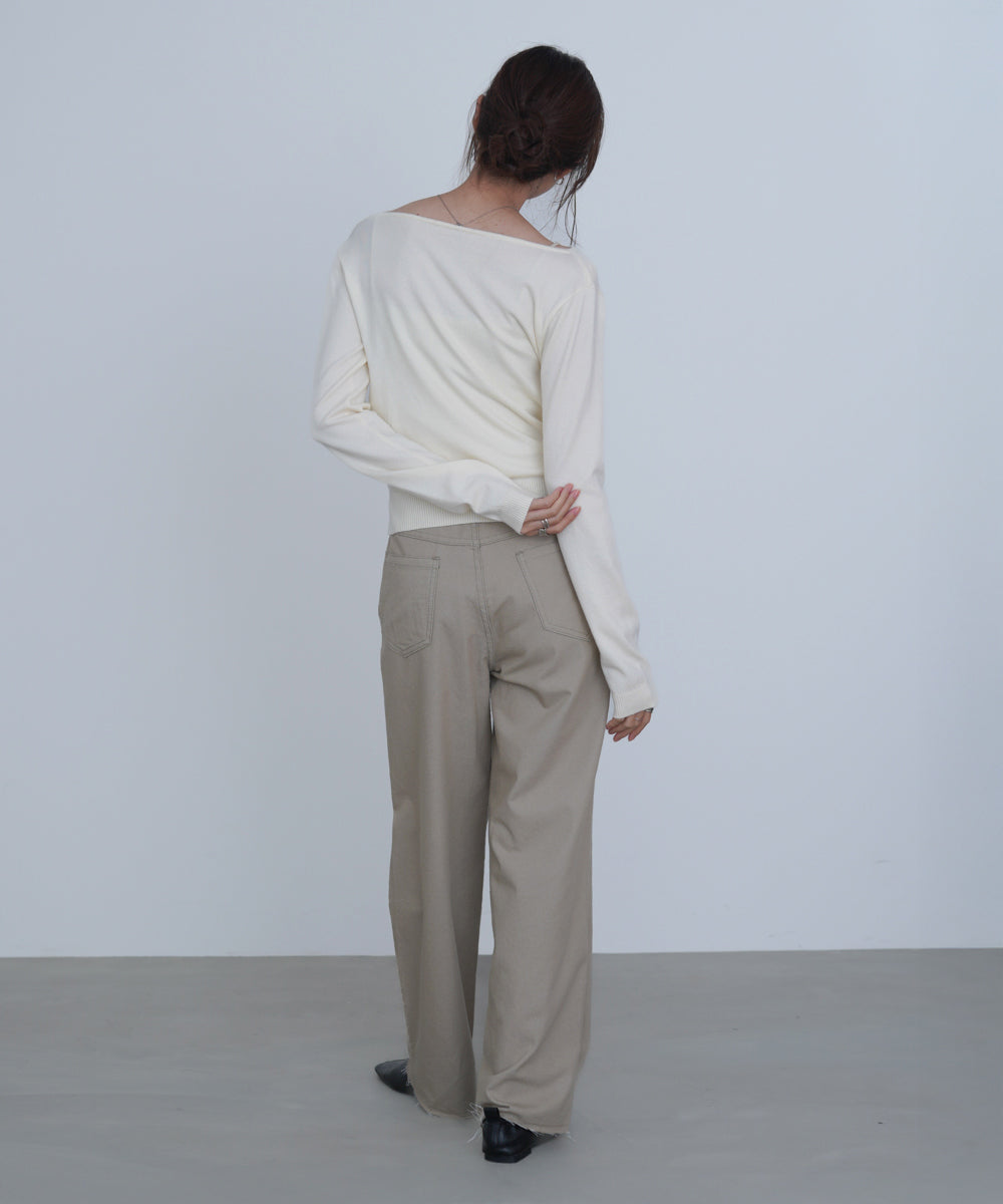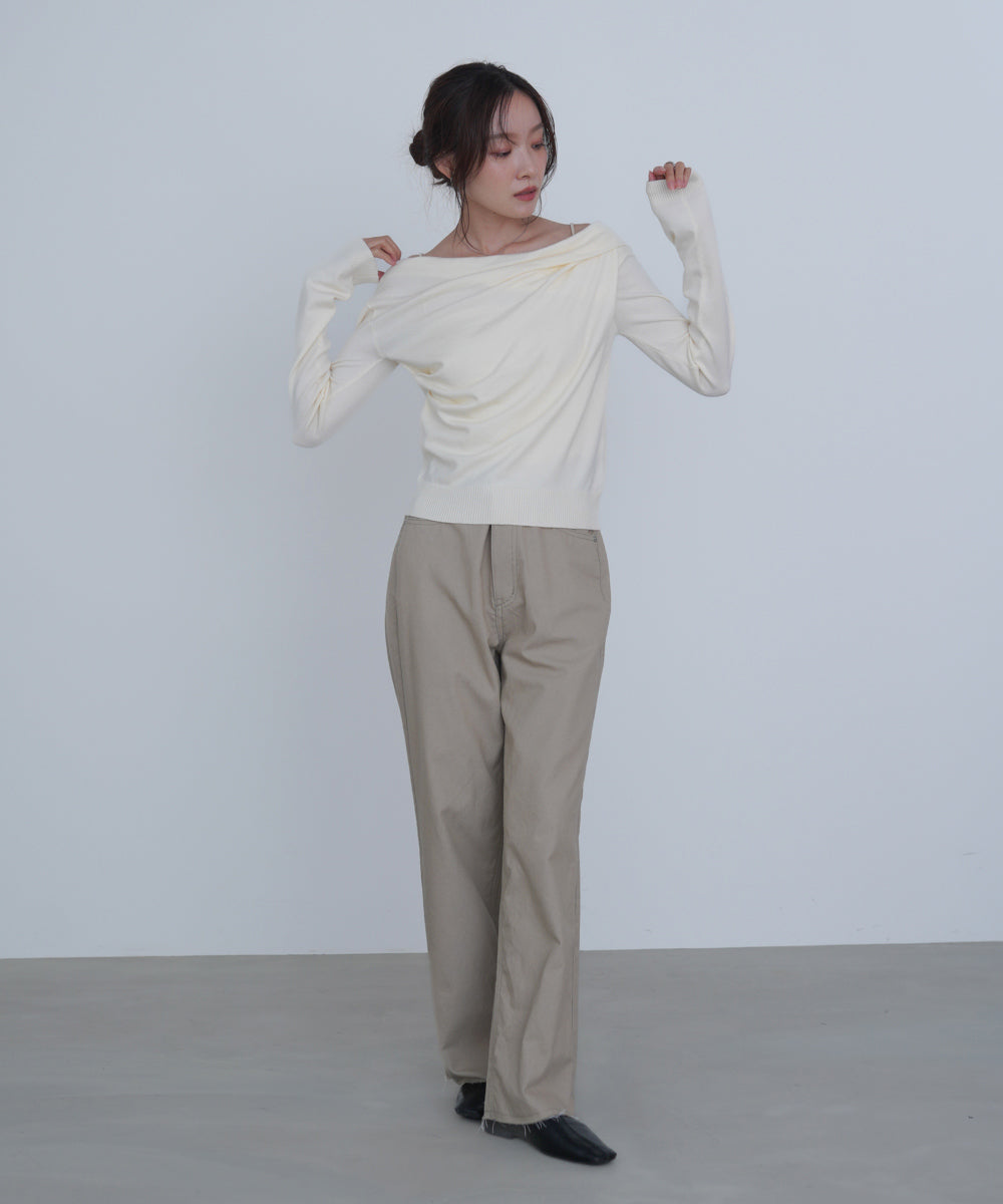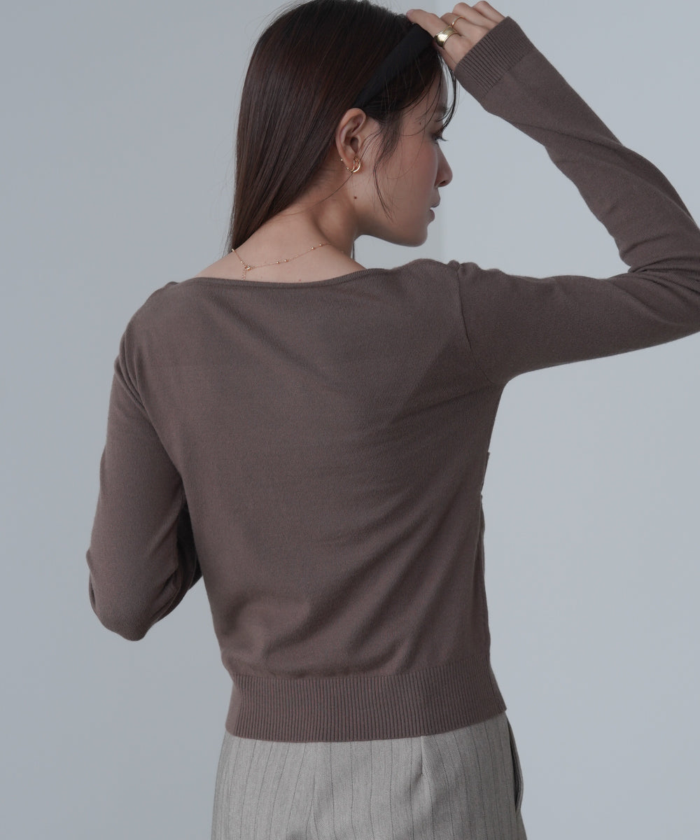 なめらかで心地よい肌触りが特徴。素肌に着てもチクチクせず、柔らかさと程よい厚みでデイリーに使いやすい質感です。伸縮性もあり、動きやすさと快適な着心地を兼ね備えています。